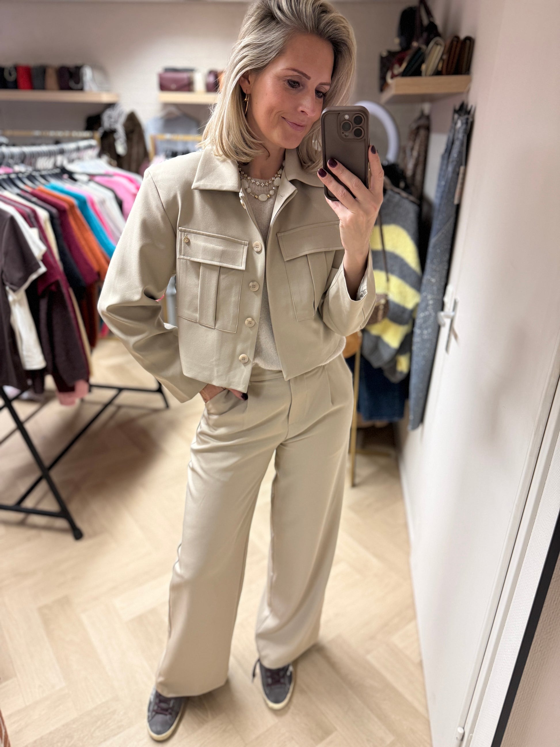 Prachtig gevoerd jasje wat je goed kunt combineren als set bij de Farah pantalon, maar deze blazer is ook heel goed te combineren op een jeans of rok. Het is een normale lengte. Het jack heeft schoudervulling en een blinde knoopsluiting. Aan de voorkant zitten twee zakjes en aan de achterkant een sluiting van een (nep)zak en de band heeft aan de achterkant lusjes voor een riem, maar dit is voor de sier. Ik draag hier de S/M mijn confectiemaat is 38/M en ik ben 1,79.