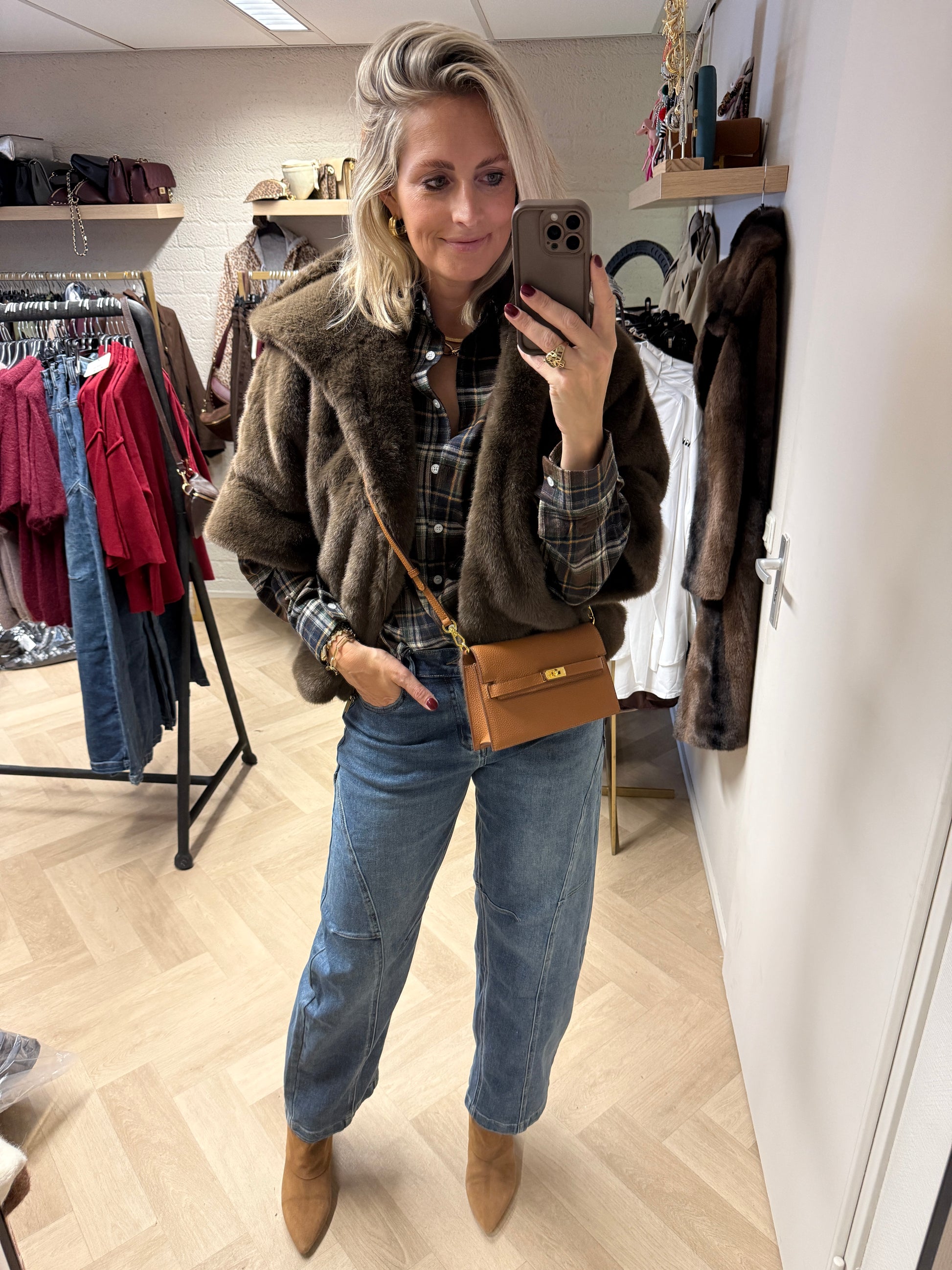 Blouse Vera Ruit Bruin Blauw Groen