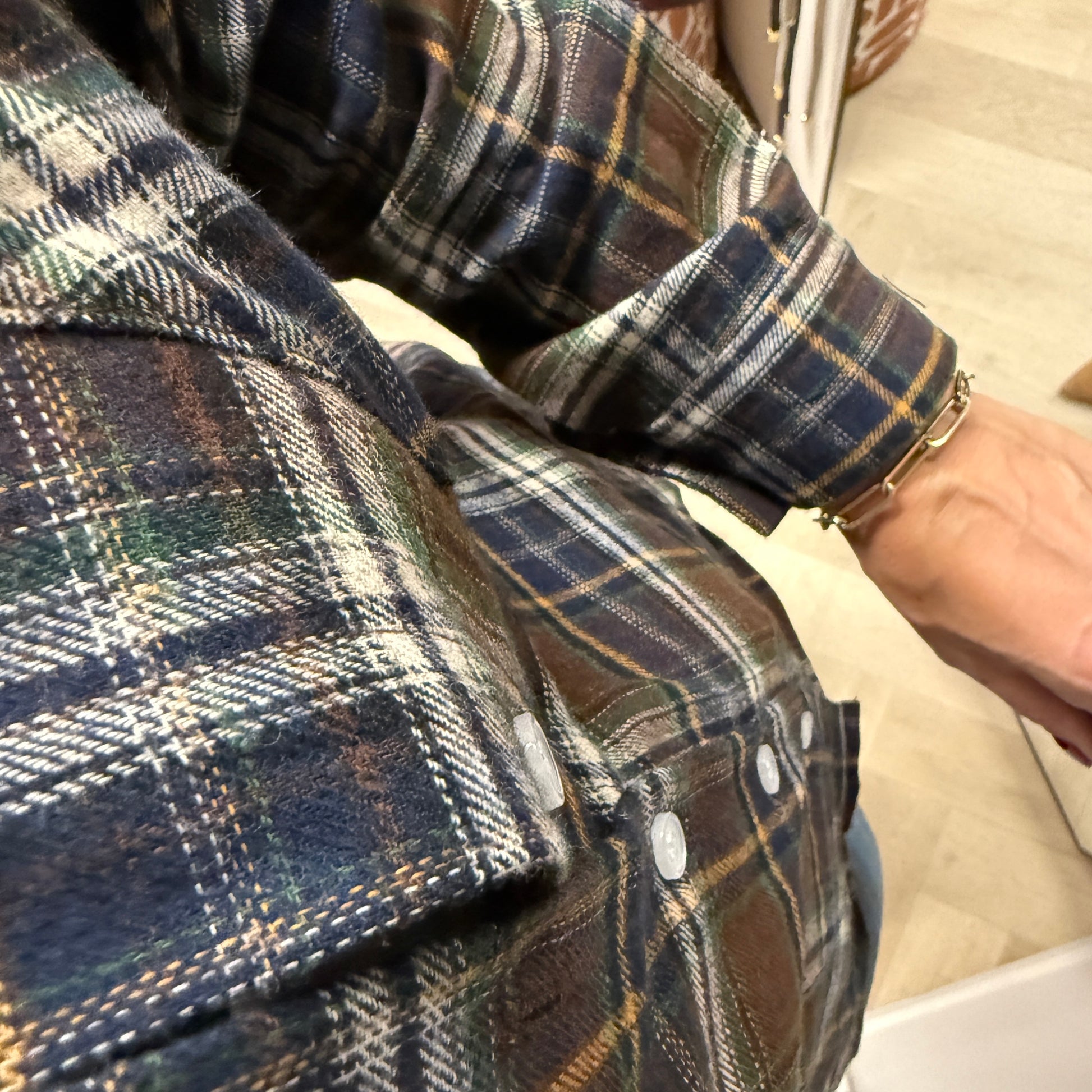 Katoenen ruitjes blouse in de kleuren groen, bruin, blauw en mosterd. De buitenkant van blouse voelt aan als flanel. Super tof op een jeans bijvoorbeeld, maar wat je nu ook veel ziet is dat de blouse omgeknoopt wordt. De blouse heeft twee maten S/M en M/L ik draag hier de S/M. Mijn confectiemaat is 38/M en ik ben 1,79.
