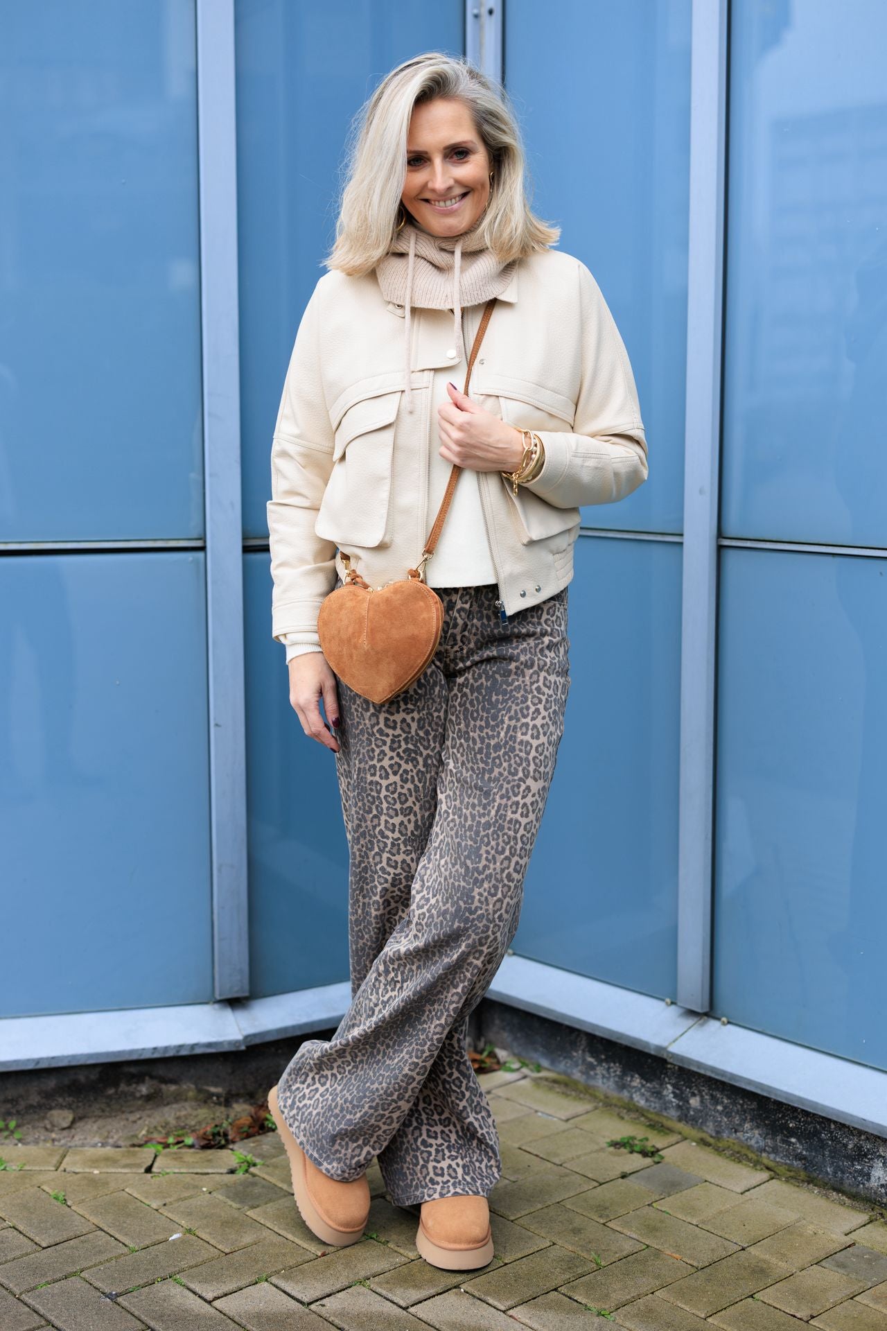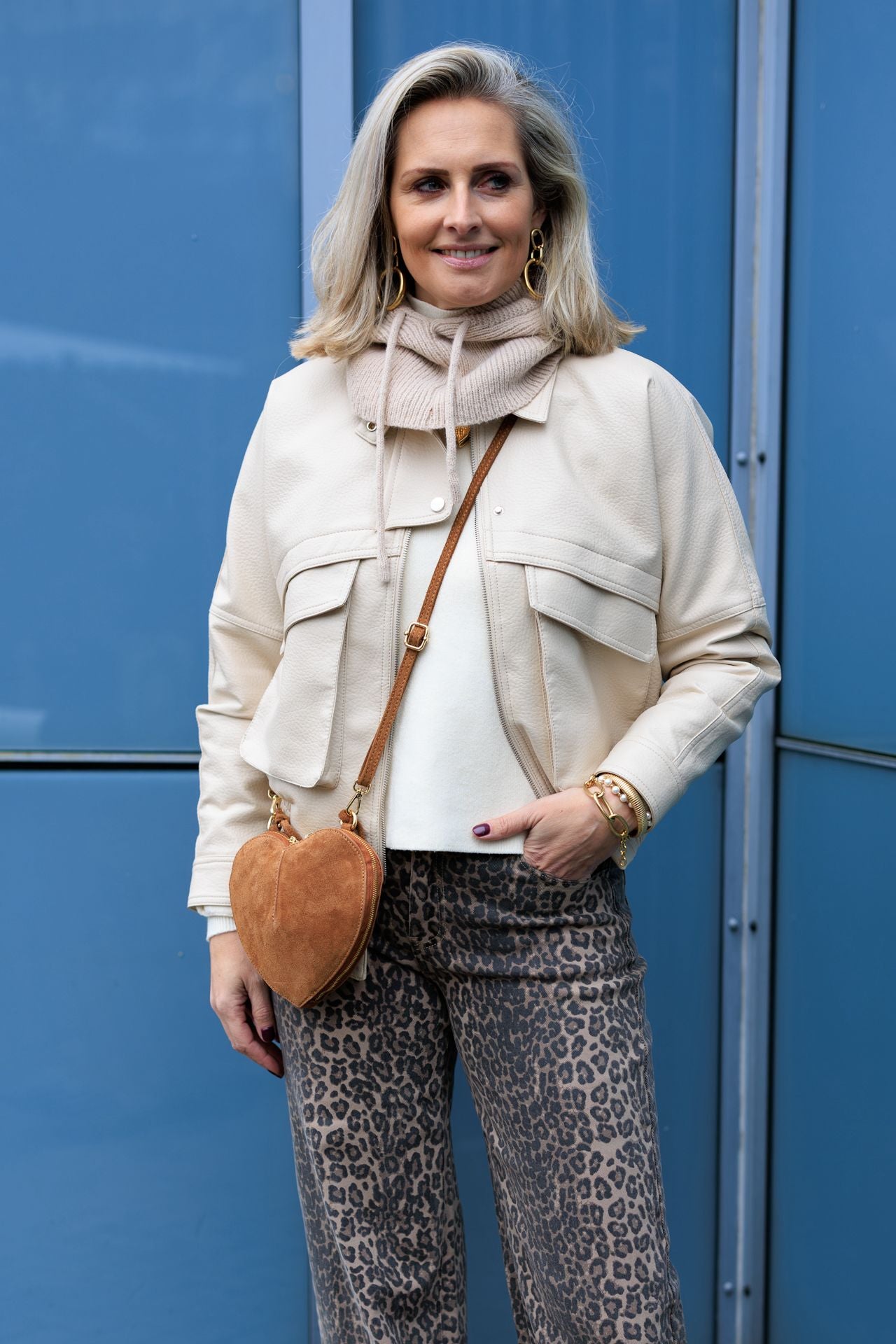 Te gek PU leather jack in het off white. Deze kleur is natuurlijk perfect te combineren. Het is een model met elastische rand aan de onderkant. De mouwen vallen goed van lengte. Het model valt normaal op maat, wil je het jack oversized dragen dan moet je wel echt een maat groter nemen. Ik draag hier maat M voor een normale fit.