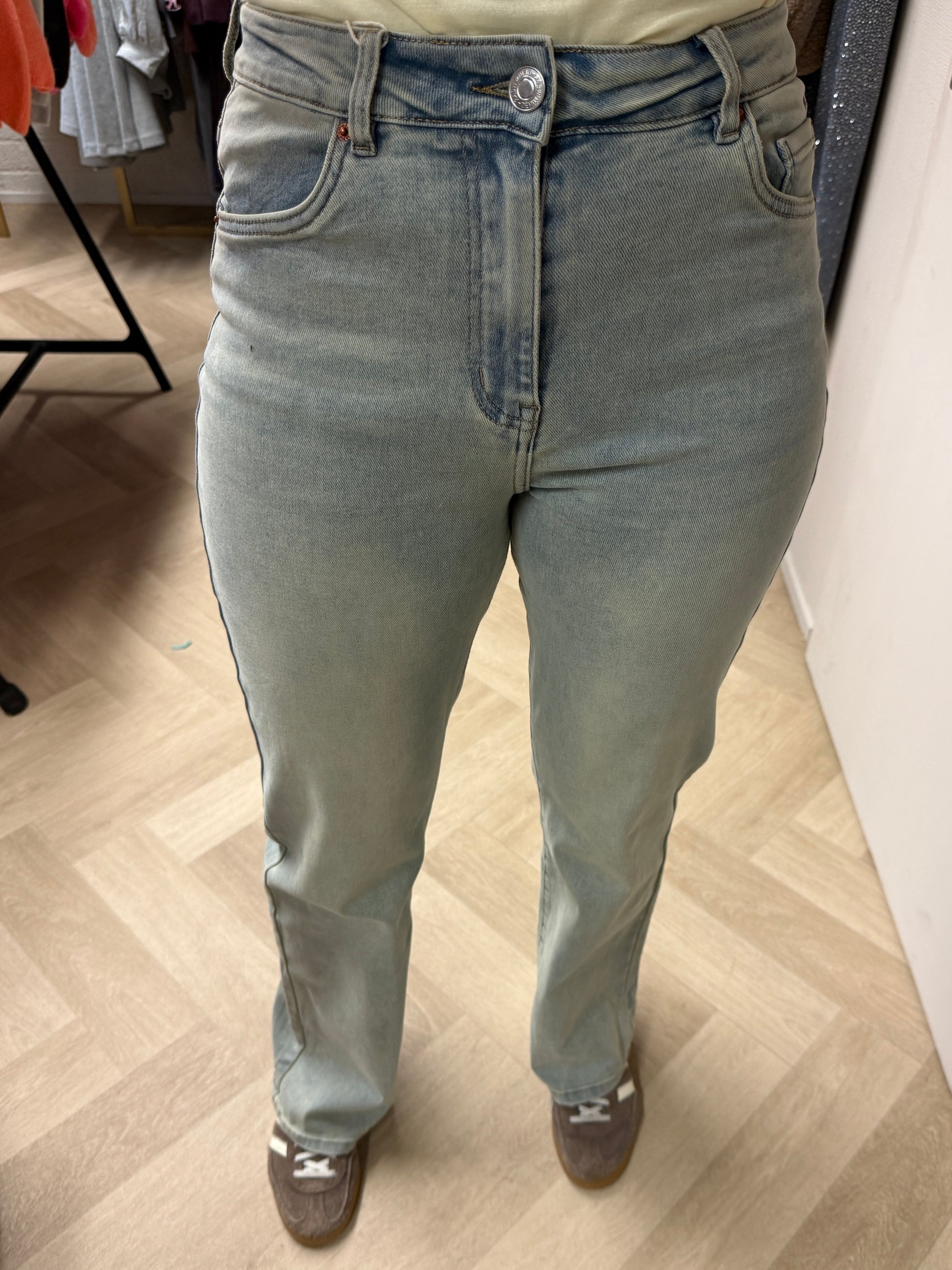 Een fantastische wide legg jeans in lengte 34. Deze jeans is er in verschillende wassingen. De jeans heeft stretch waardoor deze mooi op de billen zitten en vanuit daar recht naar beneden loopt. De jeans valt normaal op maat en is medium hoog. Ik draag hier maat 38/M, mijn lengte is 1,79. Bekijk hier andere modellen jeans.