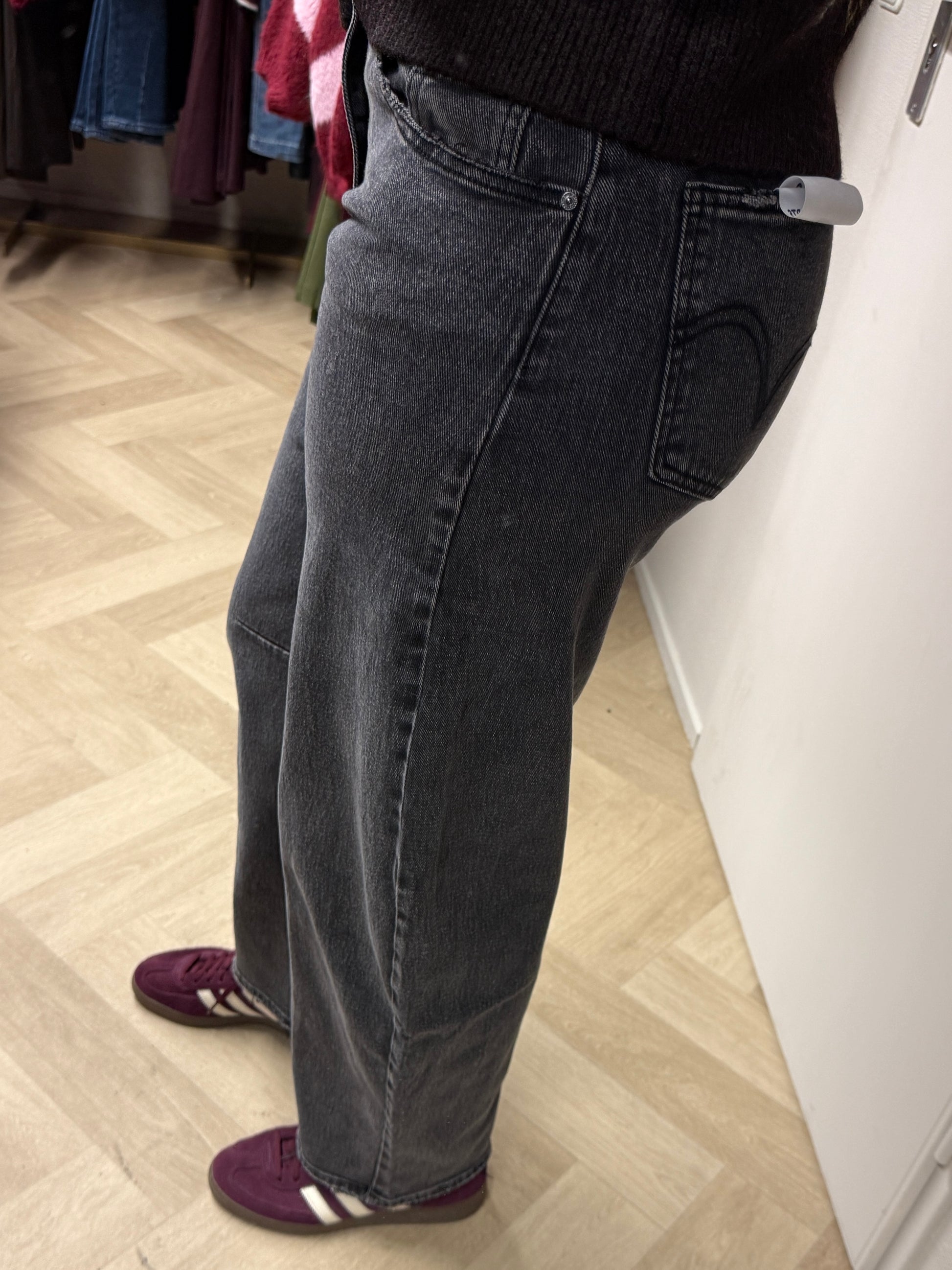 Een donkergrijze jeans, maar dit keer in een barrel fit. Deze pasvorm loopt wijd uit op de benen en aan de onderkant weer smaller toe. Hierdoor kun je er van alles onder dragen qua schoenen, sneakers, laarzen of instappers. Aan de binnenkant van de jeans zit een naadje waardoor de jeans mooi wat ronde loopt. De hoogte van deze barrelfit is medium waist. En de jeans valt normaal op maat. De lengte van de jeans is 34, mocht jij 32 hebben sla de jeans dan om. Mijn lengte is 1,79 en confectiemaat is 38/M. Bekijk hier andere modellen jeans.