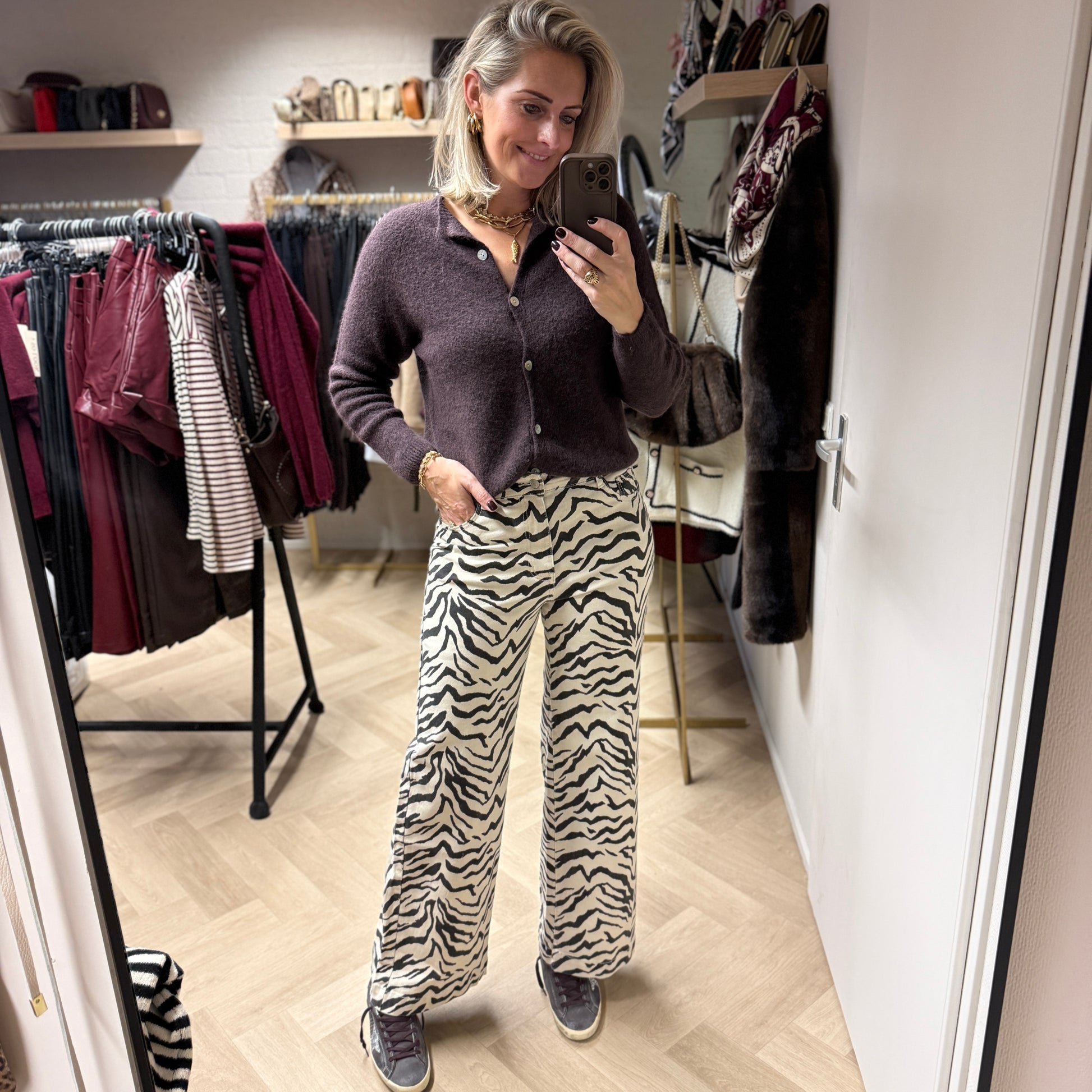 Jeans Wide Legg Zebra Bruin Ecru L32