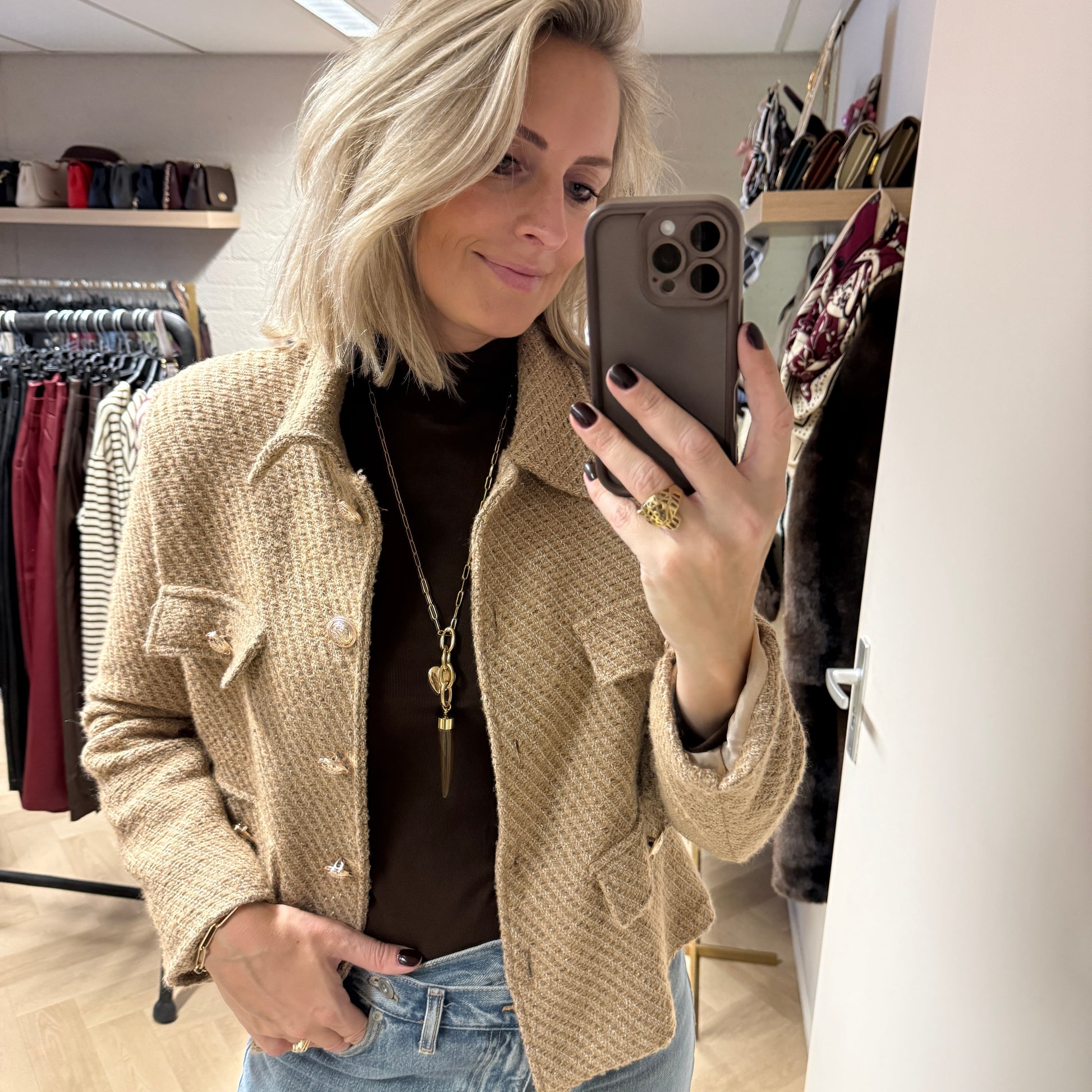 Ook weer zo'n toffe ketting met een tand in het bruin eraan en een harten bedel. Het fijne hieraan is dat de ketting wat langer valt, dus ideaal om op een trui nu bijvoorbeeld te dragen.