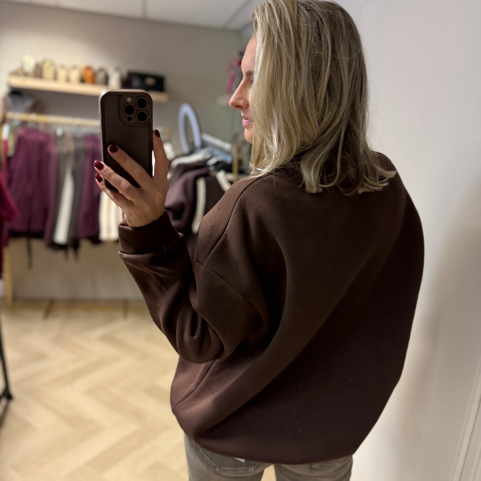 Super zachte sweater met ronde hals en de tekst Amour Paris in teddy. De sweater valt lekker oversized. Kan zeker tot en met maat 44 gedragen worden.