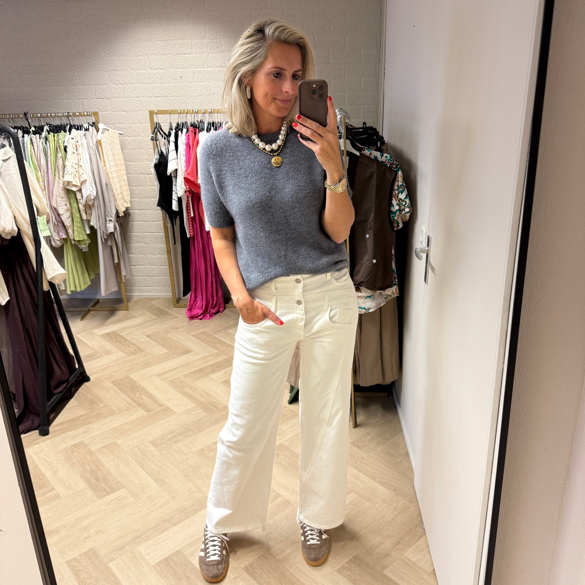 Bij Never Not Shopping is het net Never Stop Shopping, want hier is echt wekelijks een nieuwe drop te vinden van de allerleukste fashion. En sommige items zijn heel snel uitverkocht, dus je moet niet te lang twijfelen. Heb je een vraag of wil je advies over een bepaald items? Stel deze dan in de chat rechts onderaan de pagina. Hier wordt je zo snel mogelijk in geholpen. Never Not shopping heeft een grote basiscollectie met items die je ieder jaar weer uit de kast kunt trekken, want deze zijn te verkrijgen in de basiskleuren wit, zwart en beige. Maar Never Not Shopping zal Never Not Shopping niet zijn als het vervolgens ook in de trendkleuren te koop is. Denk aan de bekende Claudia Alpaca truien. In de zomer verkopen we ze met korte mouwen en in de winter met lange mouwen. Simpele basis t-shirts in een fijne stretch katoen zullen ook altijd op voorraad zijn. Ben je nou opzoek naar iets unieks? Dan ben je bij Never Not Shopping ook zeker aan het goede webshop adres. Buitenjacks of een blazer voor binnen, lange vesten en korte vesten, effen blousjes of print blousen, wide legg jeans of straight jeans, shirt met korte mouwen of shirts met lange mouwen, lange kettingen of korte kettingen, grote oorbellen of kleine oorbellen, zijde sjaals of wollen sjaals, korte broeken of capri broeken, lange jurken of korte jurkjes, lange rokken of korte rokken of misschien wel er tussenin een skort. Je kunt het zo gek niet verzinnen, maar is het trendy en worden we er blij van dan zit het in de collectie van Never Not Shopping. Volg ons voor heel veel fashion updates, iedere dag stories op de socials met uitleg over de kleding die verkocht wordt bij Never Not Shopping.