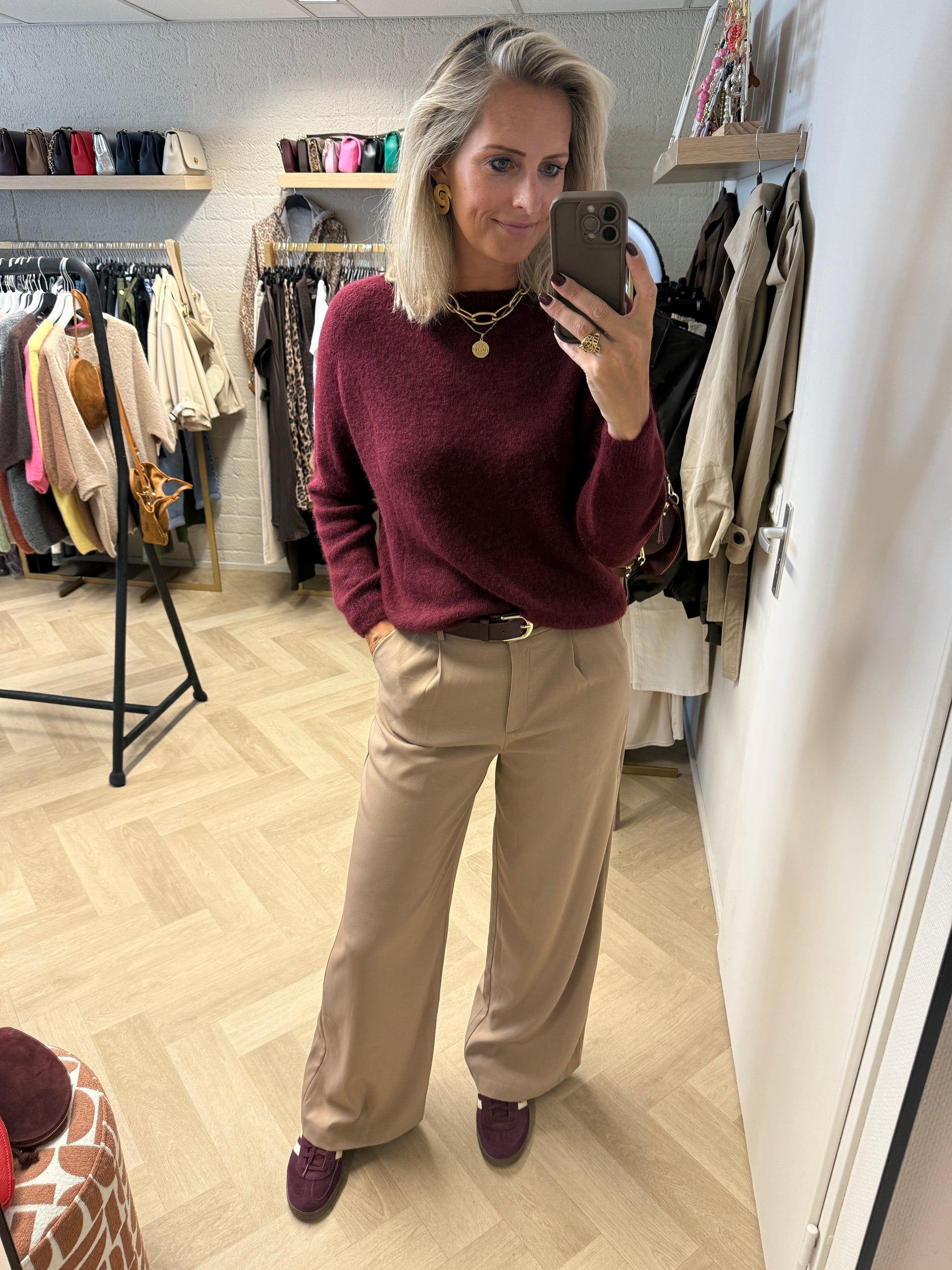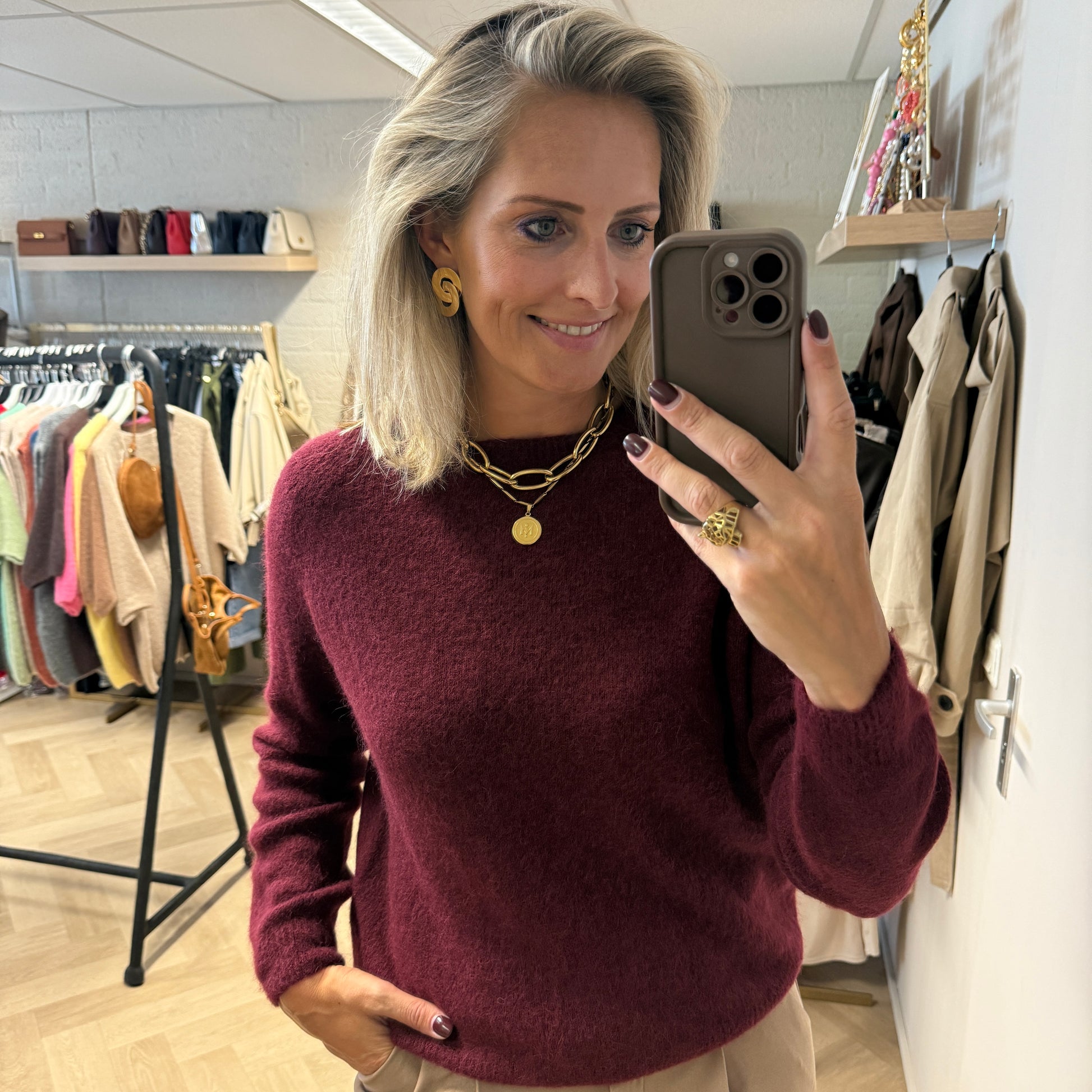 Trui Claudia Alpaca Lange Mouw Burgundy