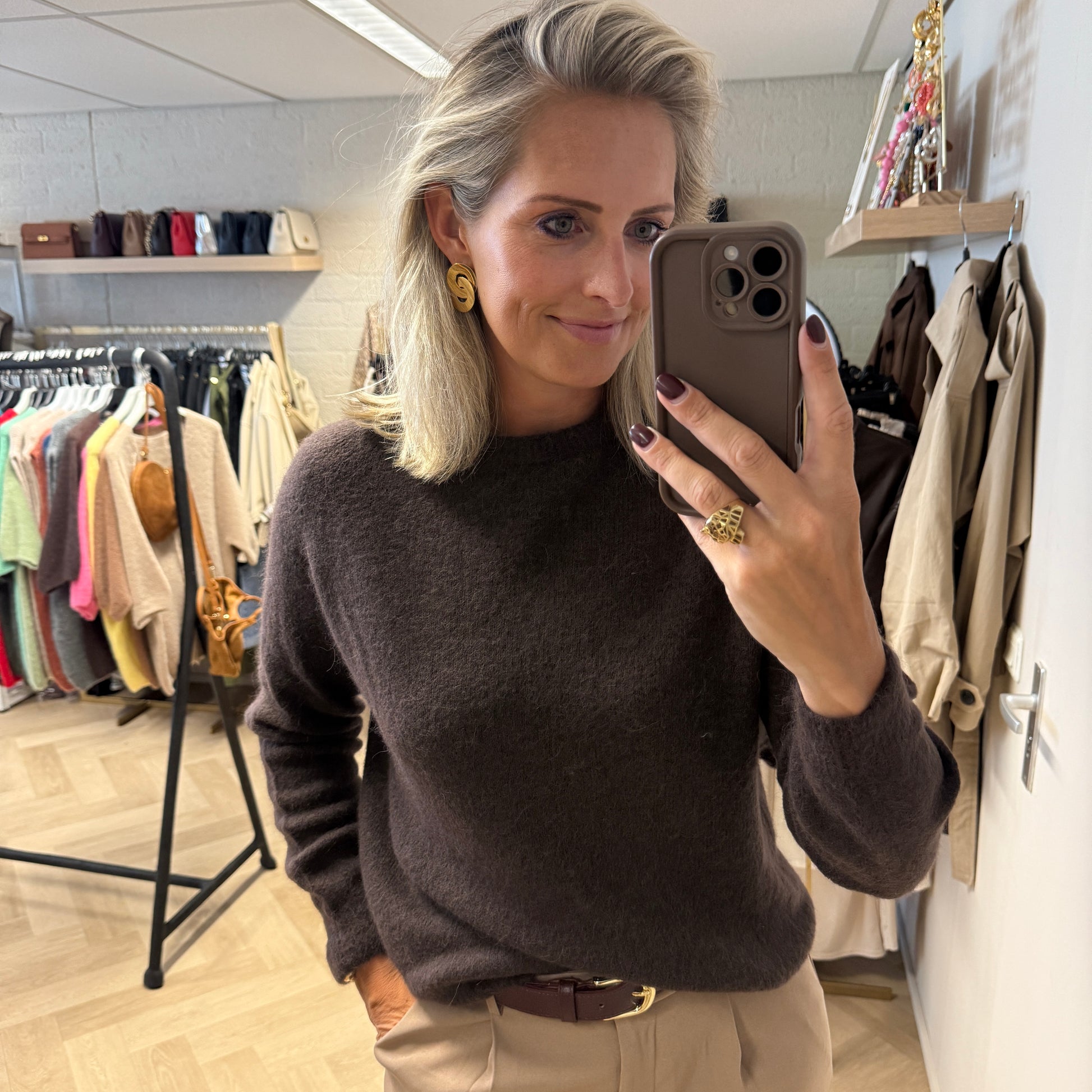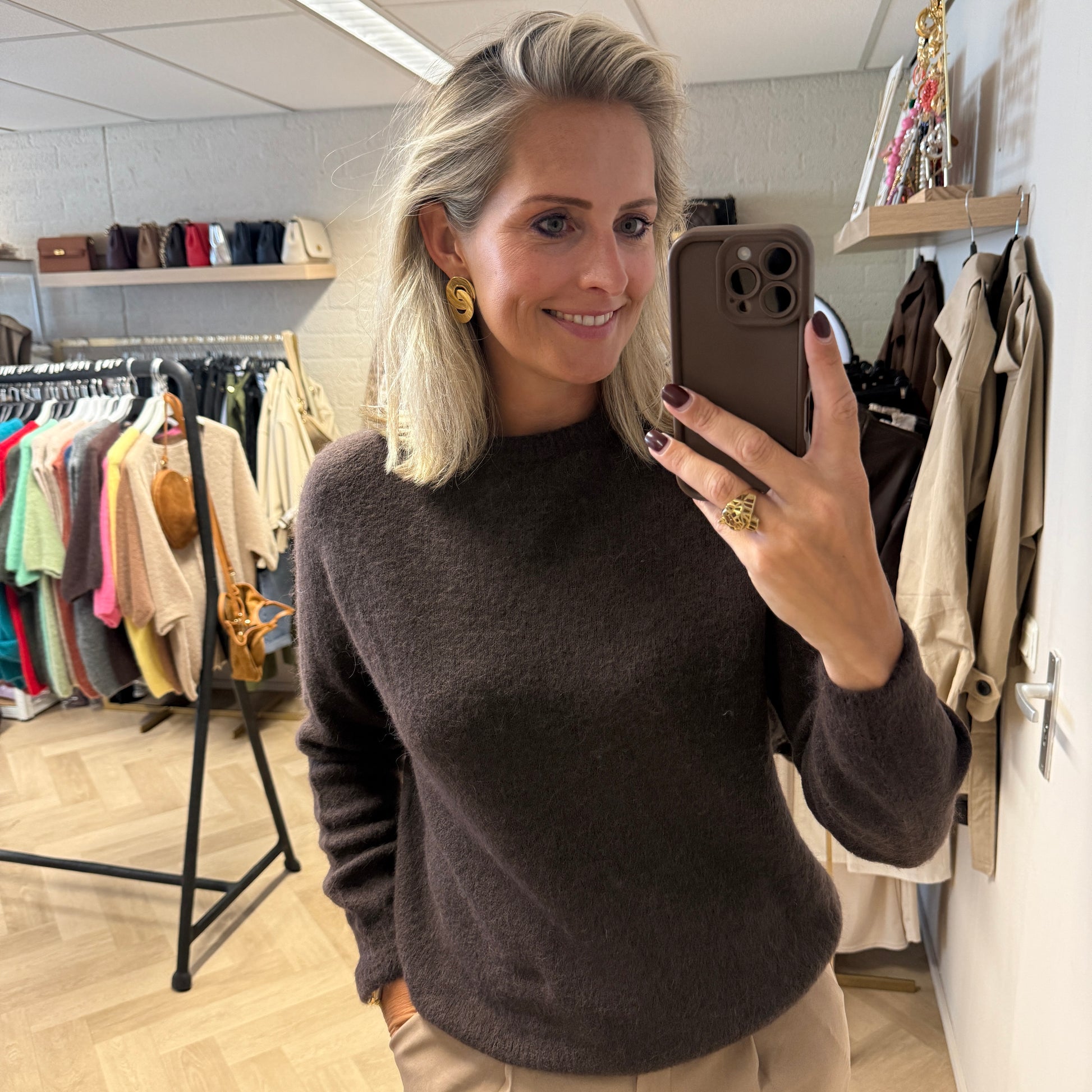 Trui Claudia Alpaca Lange Mouw Donkerbruin