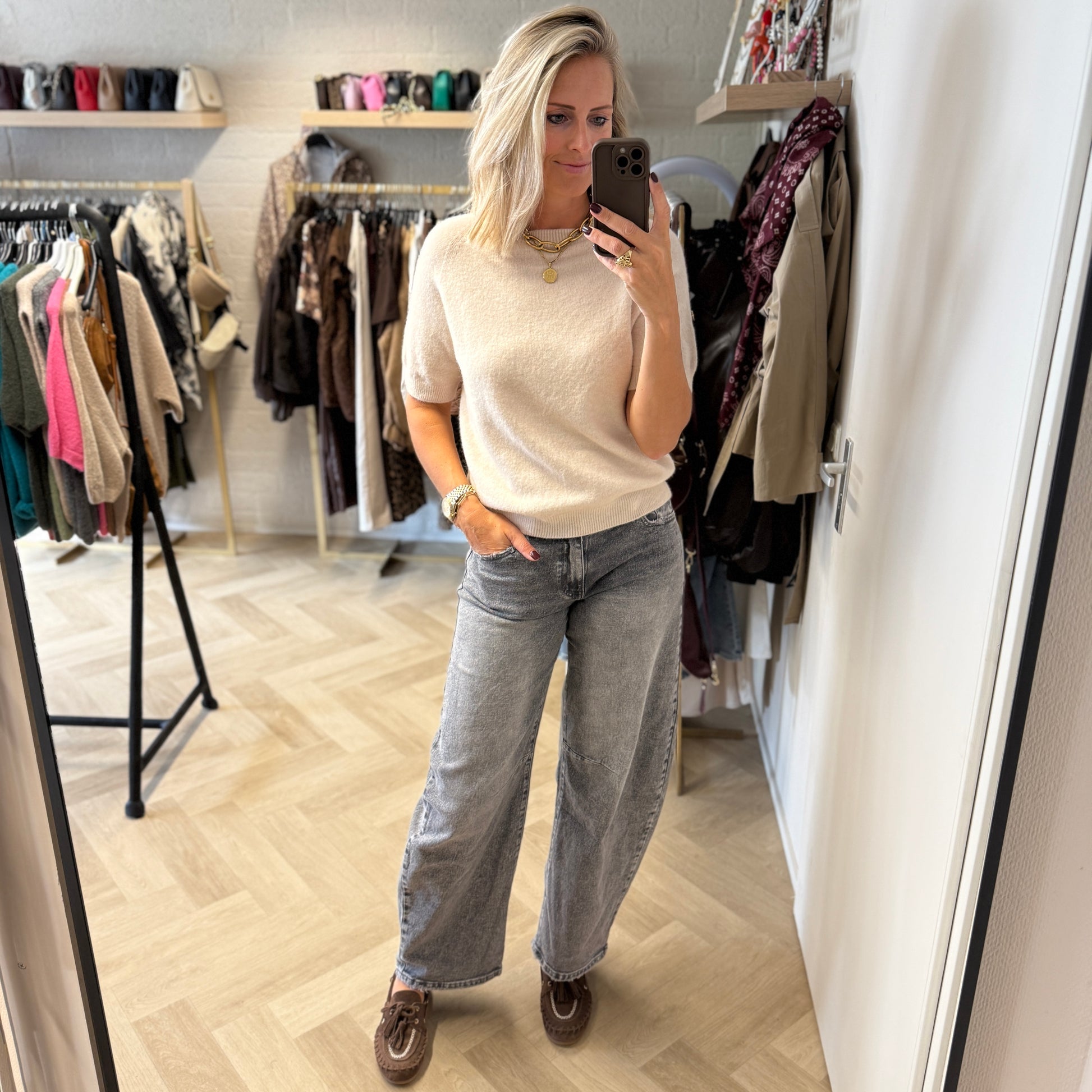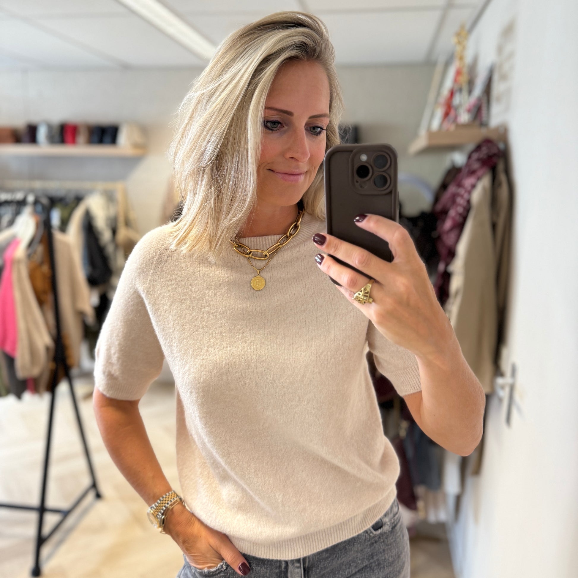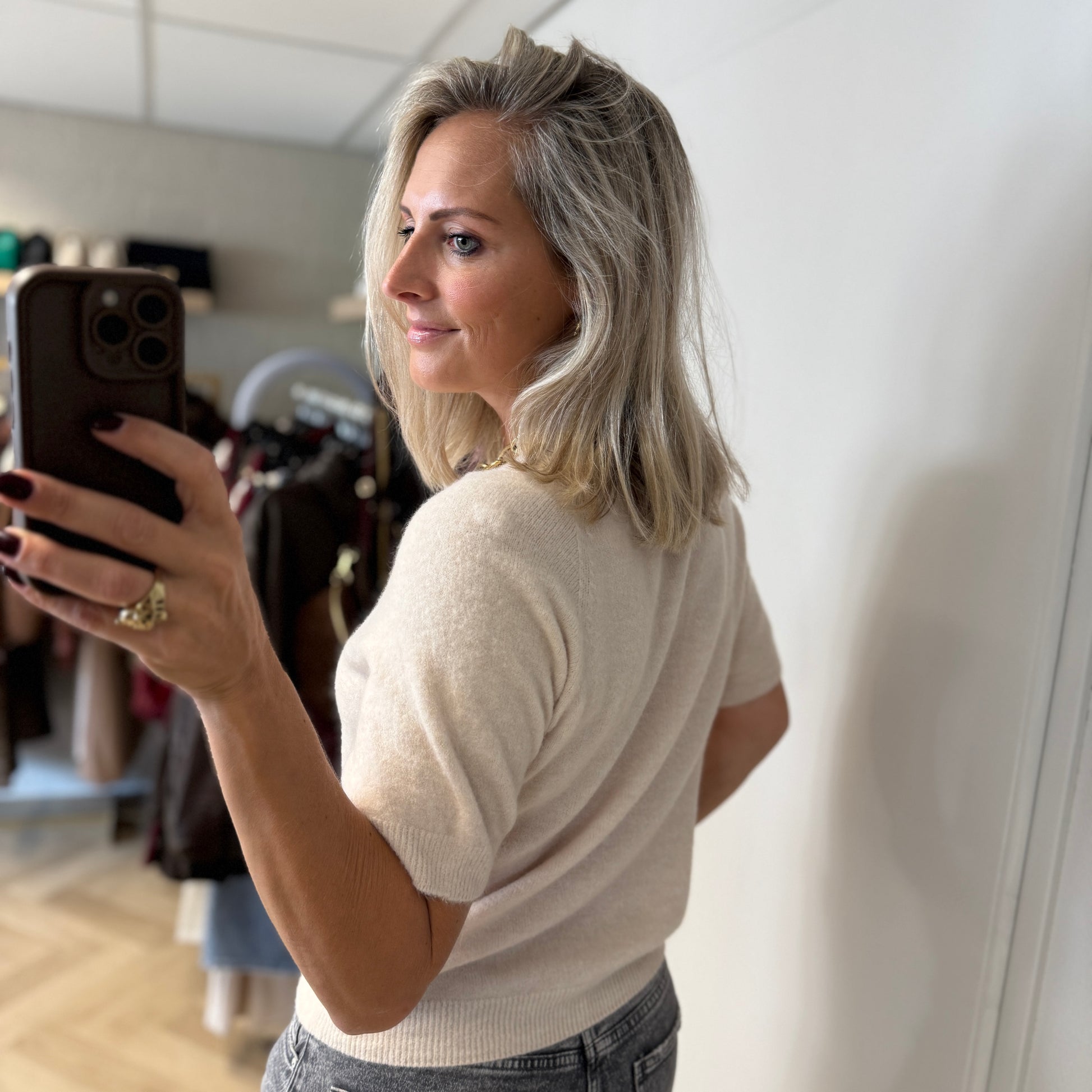 Trui met ronde hals en korte mouwen. De trui kan gedragen worden tot en met maat 40. De trui is lekker zacht en kriebelt niet! Dus ideaal voor de dames die niet tegen wol kunnen, maar toch het effect willen van een wollig truitje.