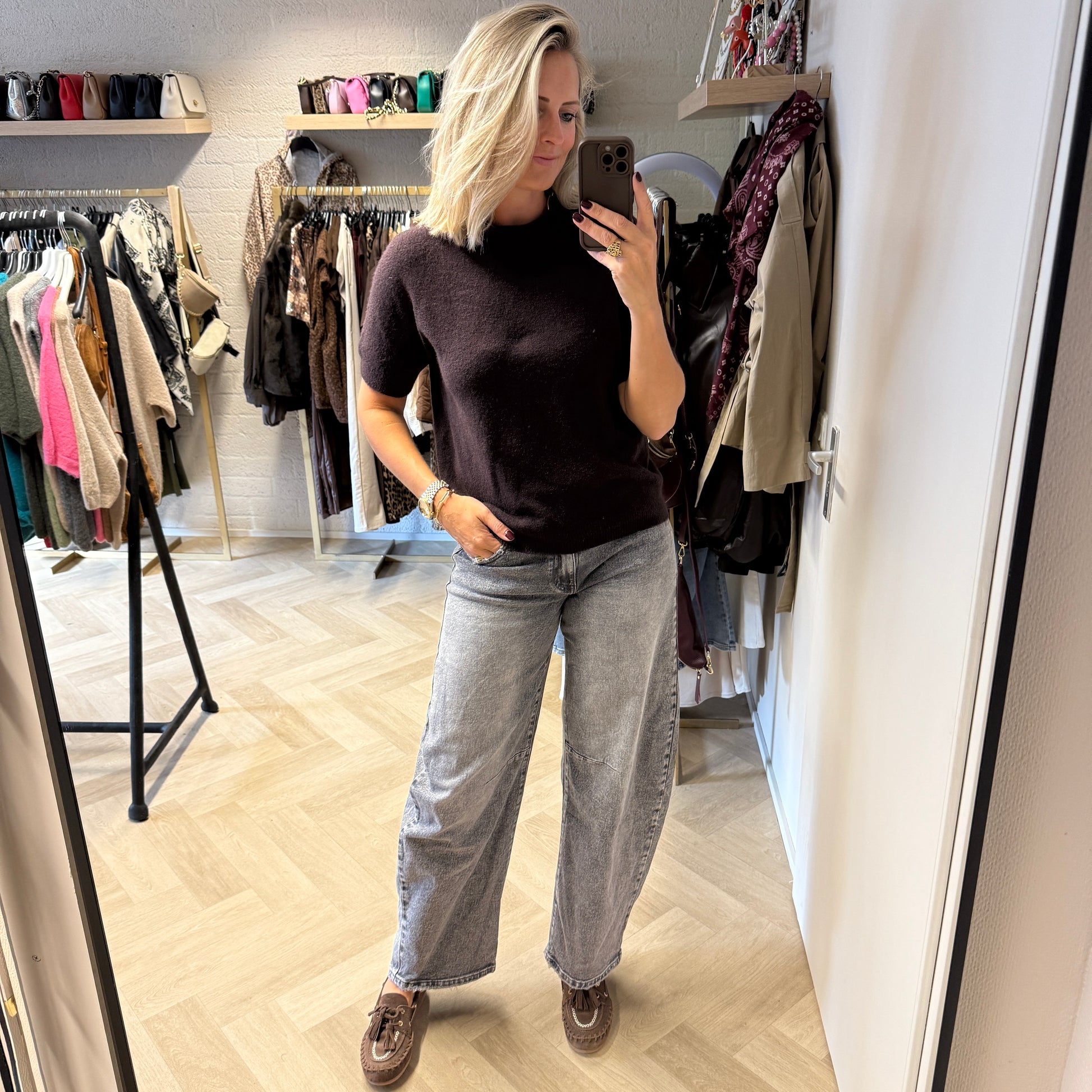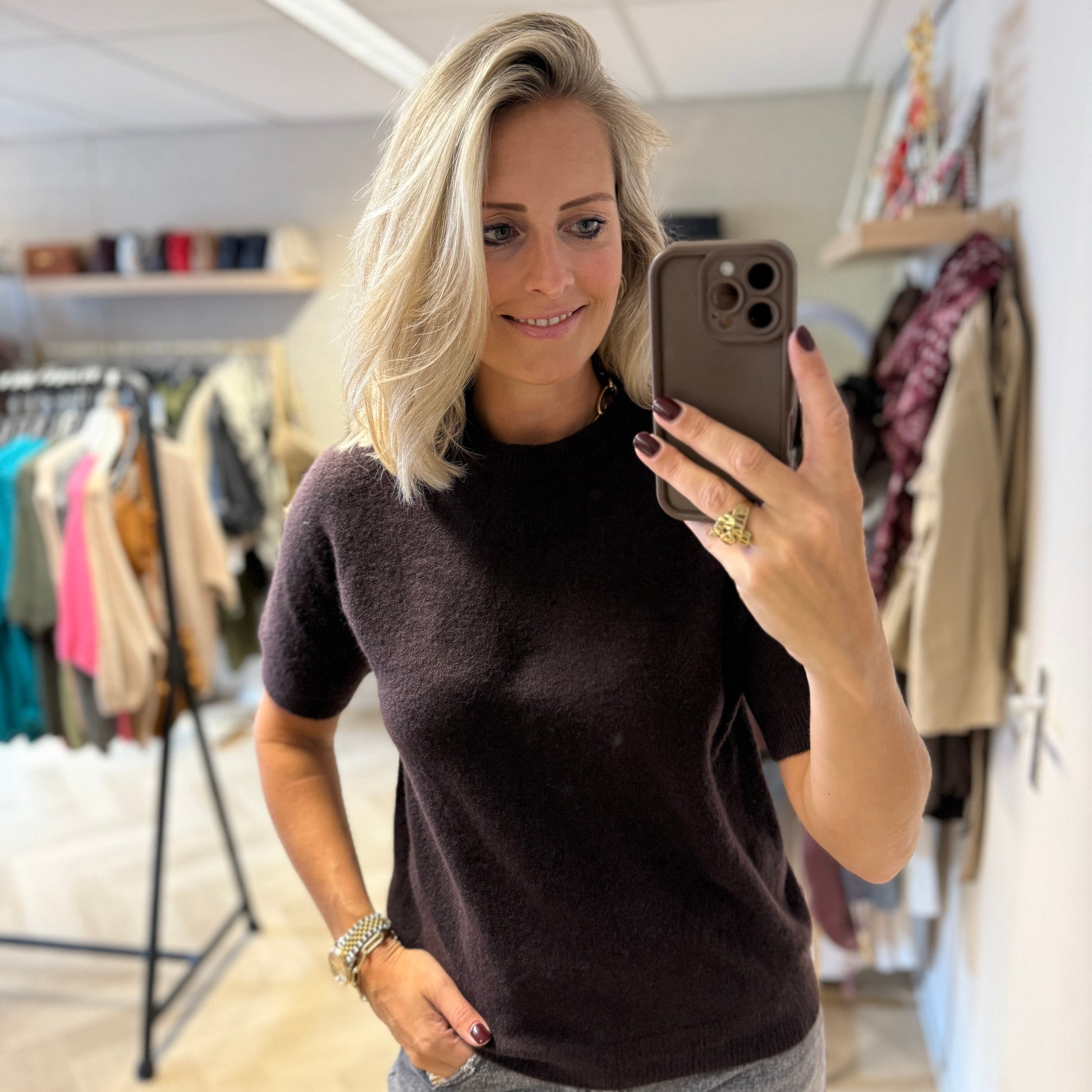 Trui met ronde hals en korte mouwen. De trui kan gedragen worden tot en met maat 40. De trui is lekker zacht en kriebelt niet! Dus ideaal voor de dames die niet tegen wol kunnen, maar toch het effect willen van een wollig truitje.